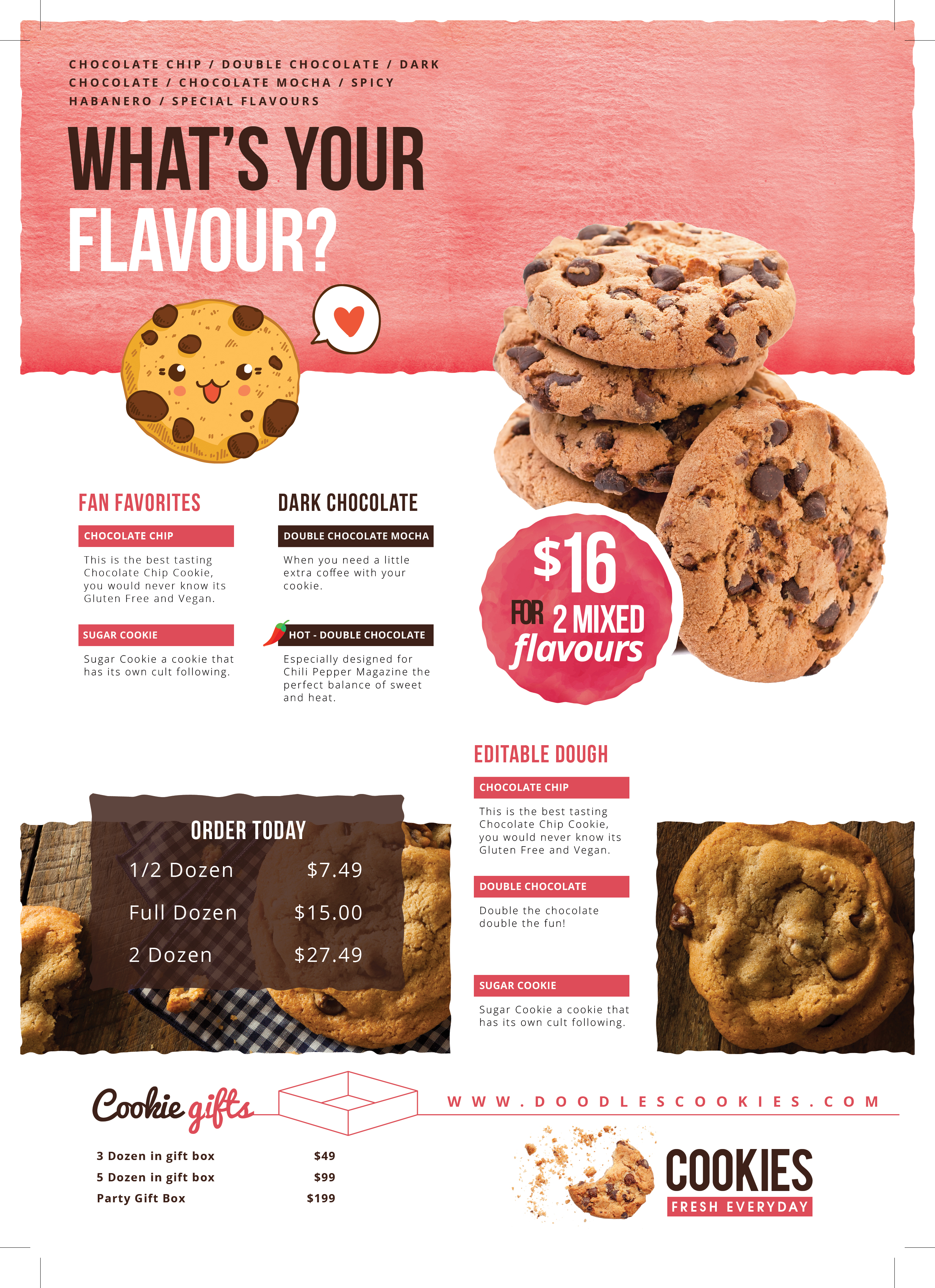 Website, Logo, Coupon Redeem AppDoodles Cookie Flyer