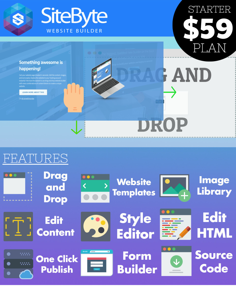 I have built a website for the sales page of the SiteByte Website builder. It was a great project and I got to test my skills on making an attractive simple website.